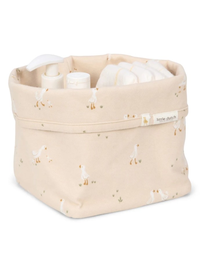 La Cesta Organizadora Little Dutch Little Goose es el accesorio perfecto para mantener el cambiador ordenado, combinando funcionalidad, estilo y un delicado diseño infantil.