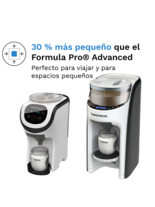 Formula Pro Mini de Baby Brezza es el preparador de biberones compacto que simplifica la alimentación del bebé estés donde estés. Un 30 % más pequeño que el modelo Advanced, mantiene la misma tecnología de mezcla patentada para preparar biberones perfectos en segundos, con total precisión y sin grumos. Ideal para hogares con poco espacio, viajes o la habitación del bebé.