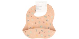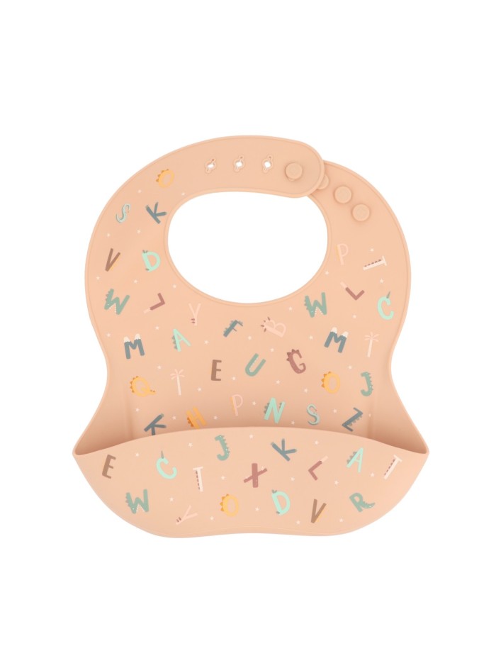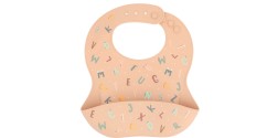 El Babero de Silicona Funny Letters con Bolsillo Recogemigas de Tutete es práctico, flexible y perfecto para las primeras comidas del bebé, sin ensuciar la ropa.