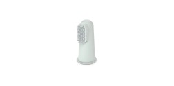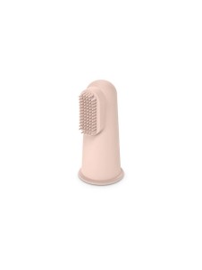 - Cepillo dental de dedal de silicona. Su forma de dedal está pensada para introducir el dedo y limpiar suavemente las encías y primeros dientes del bebé con cajita higiénica.