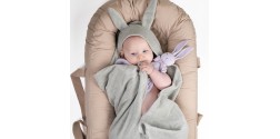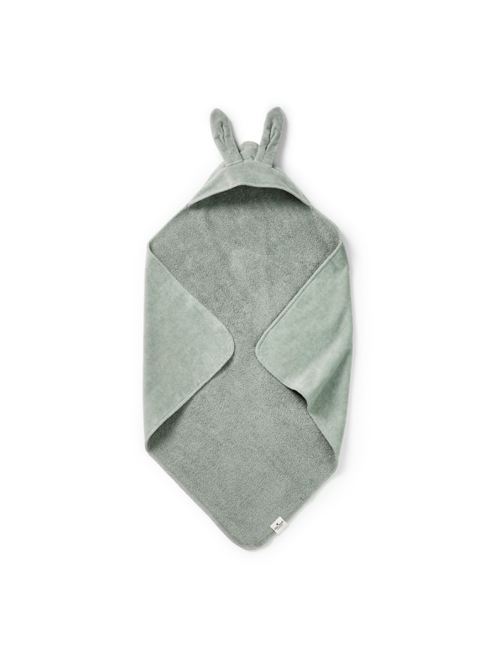 Toalla con Capucha Mineral Green Bunny – Envuelve a tu bebé tras el baño con esta toalla de rizo absorbente y terciopelo suave, cómoda y segura para recién nacidos hasta 3 años.