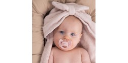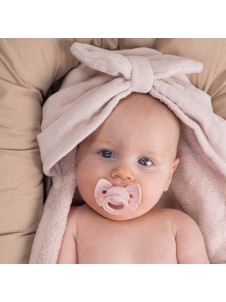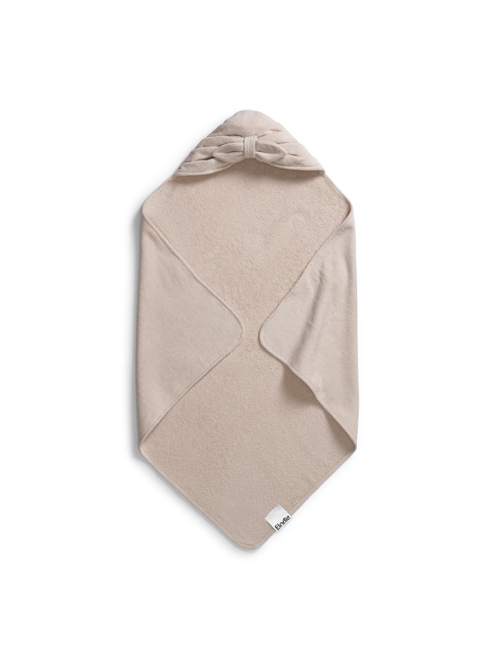 La Toalla con capucha Powder Pink Bow de Elodie, ideal para envolver y secar al bebé tras el baño, combinando suavidad y funcionalidad. Con rizo absorbente y terciopelo exterior.