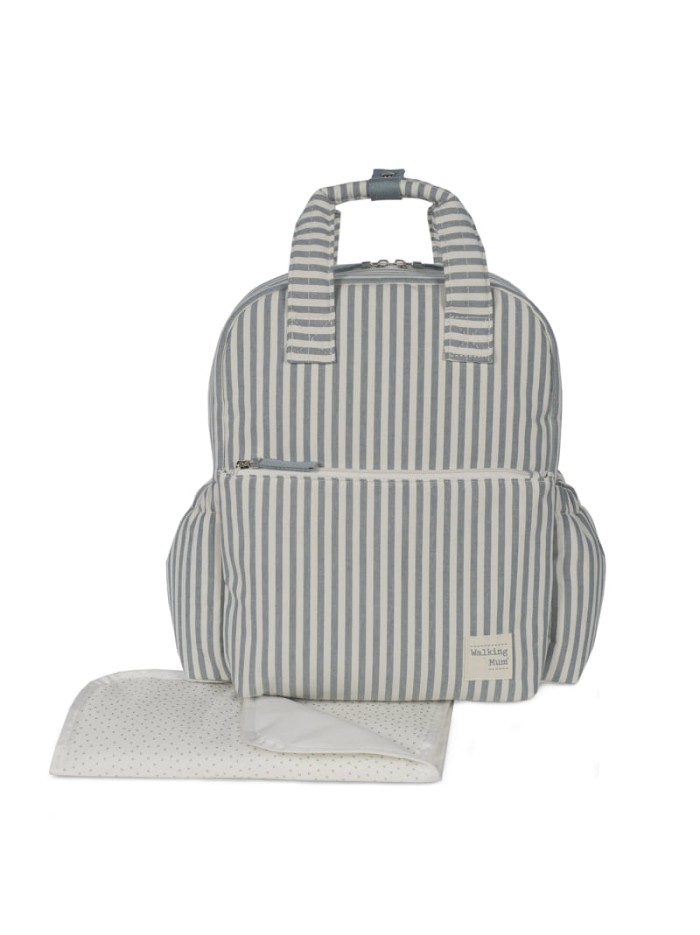 La mochila Praliné de Walking Mum es una práctica bolsa de maternidad que combina mochila y bolso para el carrito. Ligera, resistente y de gran capacidad. Cuenta con varios bolsillos interiores y exteriores, incluido uno térmico para biberones y otro plastificado para ropa húmeda. Incluye cambiador a juego y asas para colgar en el carrito o llevar cómodamente en la espalda.