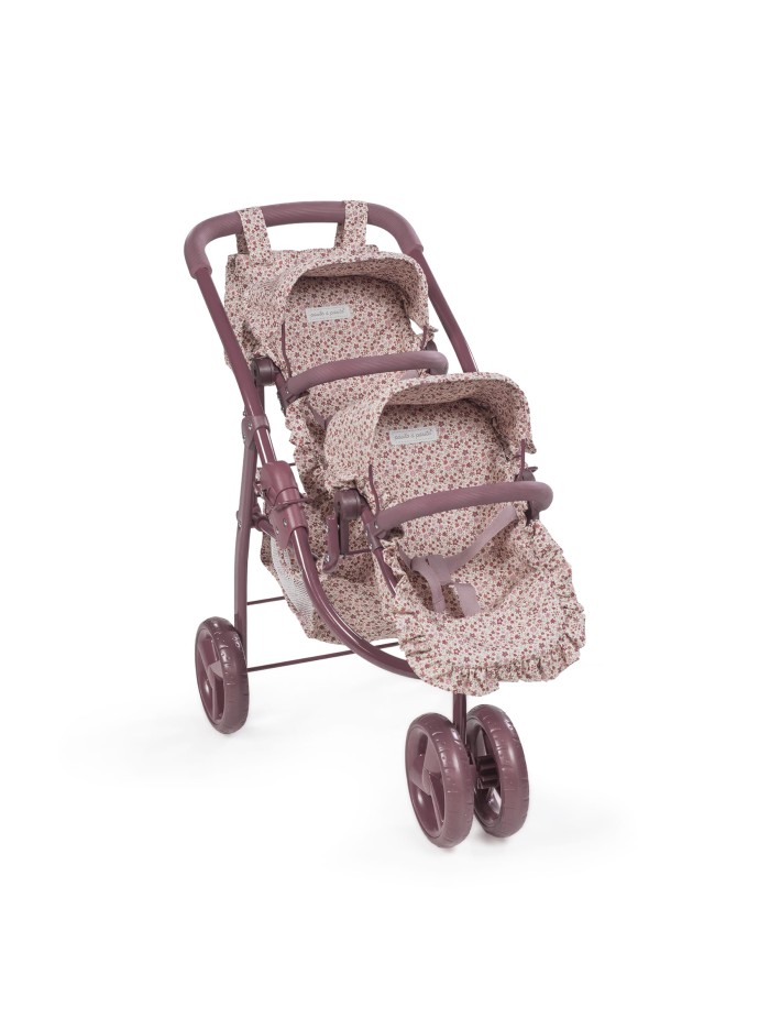 El Cochecito Gemelar de Muñecas Pasito a Pasito Colección Cherry es perfecto para que los más pequeños disfruten el doble llevando a sus muñecas favoritas de paseo. Con un delicado estampado floral en tonos rosas y rojos, combina ternura y estilo. Ofrece comodidad gracias a su doble asiento, manillar ergonómico y cesta inferior, además de incluir un bolso a juego. Su sistema de plegado lo hace práctico y fácil de guardar.