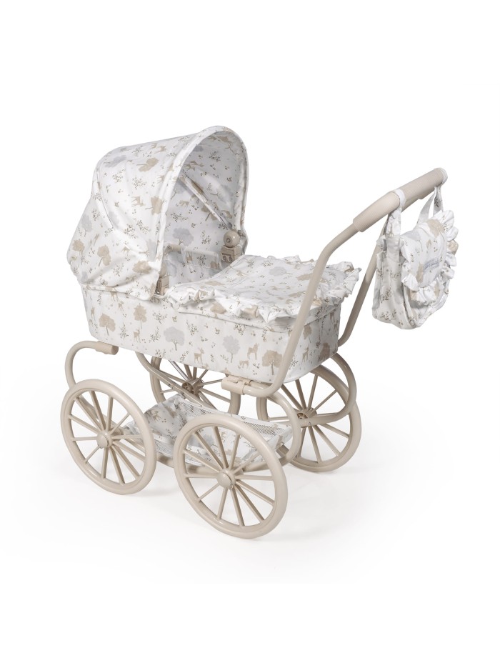 El Cuco Clásico de Muñecas Pasito a Pasito Colección Nara combina elegancia y tradición en un diseño vintage con detalles cuidados. Con ruedas grandes de estilo clásico, capazo espacioso y el delicado estampado de cervatillos en tonos beige, es ideal para que los pequeños paseen a sus muñecas con estilo. Incluye bolso de paseo a juego y un manillar a 68 cm de altura, perfecto para niños de 3 a 4 años.