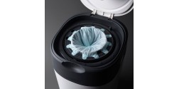 El único Contenedor que gira y envuelve de forma individual cada pañal para que los malos olores no escapen, incluso con la tapa abierta.