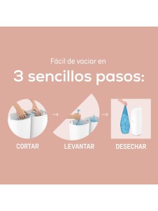 El contenedor de pañales Angelcare Classic facilita el cambio de pañal, manteniendo el hogar limpio y sin malos olores. Su sistema sella de manera higiénica y segura, lo que permite usarlo cómodamente en el dormitorio o la habitación del bebé sin necesidad de vaciarlo a diario.