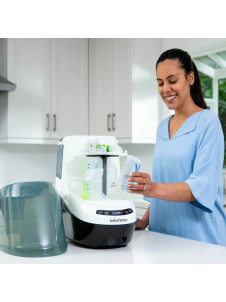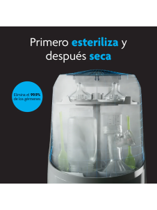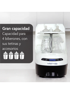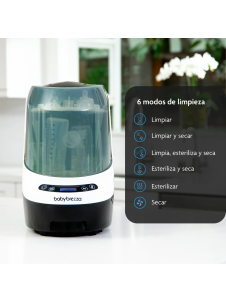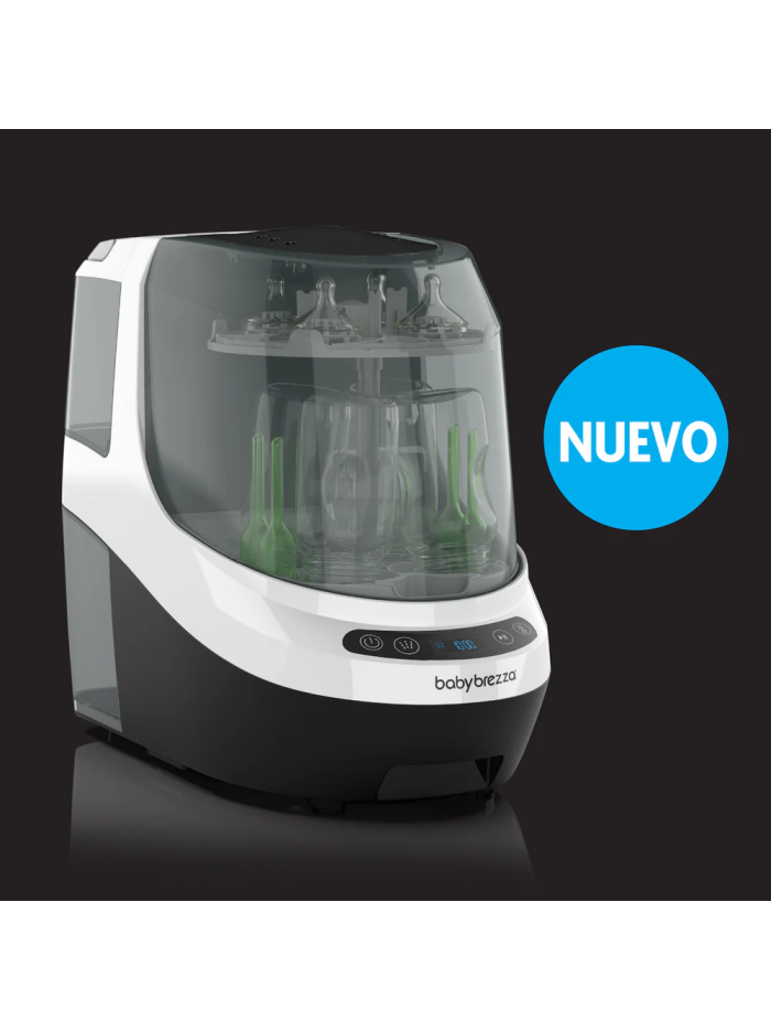 El Lavabiberones Automático 6 en 1 lava, esteriliza y seca biberones y accesorios en un solo paso, eliminando el 99,9 % de gérmenes. Con 20 chorros de agua a presión, limpia hasta los rincones más difíciles, siendo clínicamente más eficaz que un cepillo. Su diseño sin conexión al grifo, depósitos extraíbles y ruedas integradas lo hacen práctico y fácil de usar en cualquier parte del hogar.