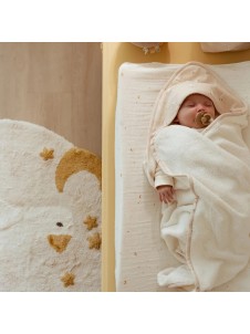La Funda para cambiador infantil Luna y Estrellas aporta estilo y comodidad en cada momento del cambio. Confeccionada en suave algodón biológico, ofrece el máximo confort al bebé y un encantador diseño que decora la habitación. Es práctica, fácil de lavar y compatible con los cambiadores estándar.