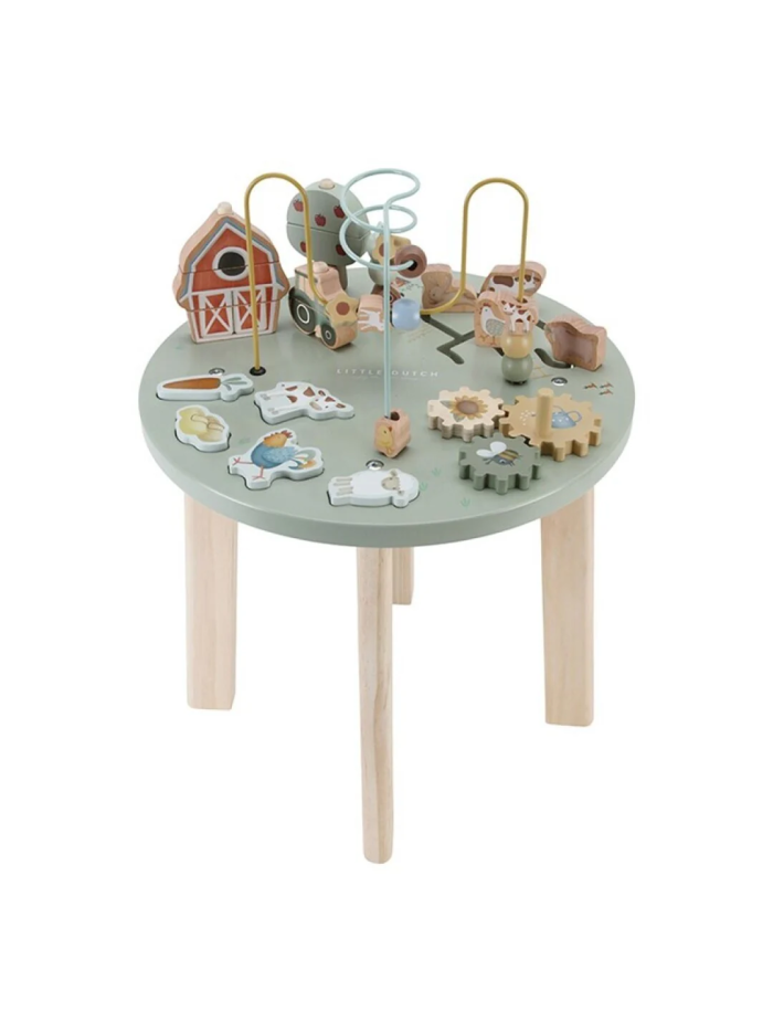 La Mesa de Actividades Pequeña Granja de Little Dutch es una divertida mesa de juegos de madera diseñada para estimular el aprendizaje y la curiosidad de los más pequeños. Con múltiples actividades inspiradas en la granja, invita a jugar, explorar y desarrollar habilidades, mientras el niño permanece de pie y se entretiene de forma segura.