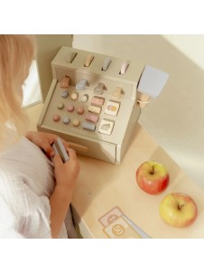 La caja registradora de madera Little Dutch convierte el juego de las tiendas en una experiencia realista y divertida. Incluye escáner, lector de tarjetas, botones funcionales y un cajón para guardar monedas y billetes. Además, incorpora una tarjeta de débito para que los clientes puedan pagar en efectivo o con tarjeta, fomentando el aprendizaje de los números y el valor del dinero a través del juego simbólico.