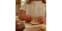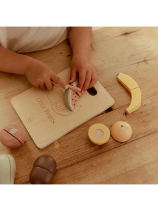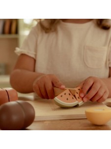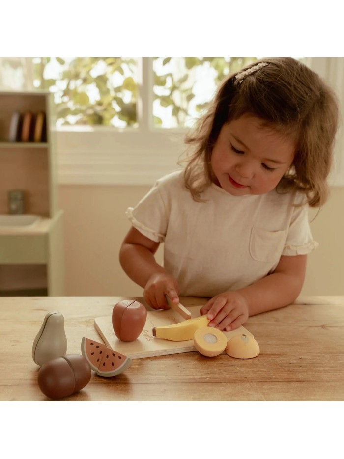 ¡Prepara un delicioso tentempié! El set de frutas de madera para cortar de Little Dutch es un juguete alegre y educativo que incluye seis frutas diferentes: manzana, pera, plátano, kiwi, naranja y sandía. Cada pieza puede cortarse por la mitad con el cuchillo de madera y volver a unirse fácilmente gracias al velcro. Ideal para pequeños chefs que disfrutan del juego simbólico y quieren practicar habilidades motoras.