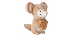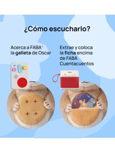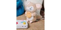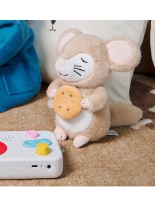 Tierno peluche Lirón Óscar con ficha para escuchar 8 historias en rima, ideales para la hora de dormir. Cada cuento presenta un animal del bosque y un encuentro especial entre adulto y niño, acompañado de sonidos de la naturaleza y dulces melodías que favorecen la relajación. Los niños pueden abrazar al peluche mientras escuchan las historias mediante la ficha situada en su galleta.