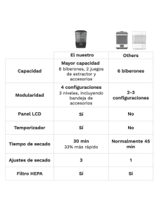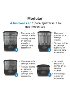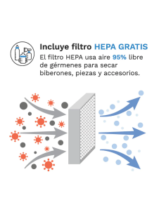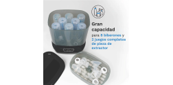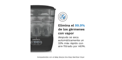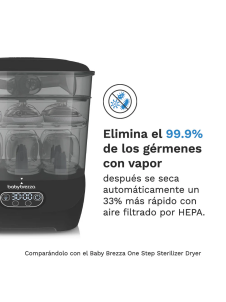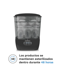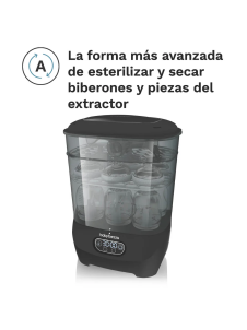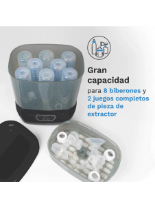 El Esterilizador y Secador Automático es la solución ideal para mantener los accesorios de tu bebé siempre higiénicos y listos para usar. Esteriliza y seca en un solo paso, eliminando el 99,9 % de los gérmenes con vapor natural y aire caliente filtrado por HEPA. Su diseño modular y gran capacidad lo hacen práctico y versátil para cualquier hogar.
