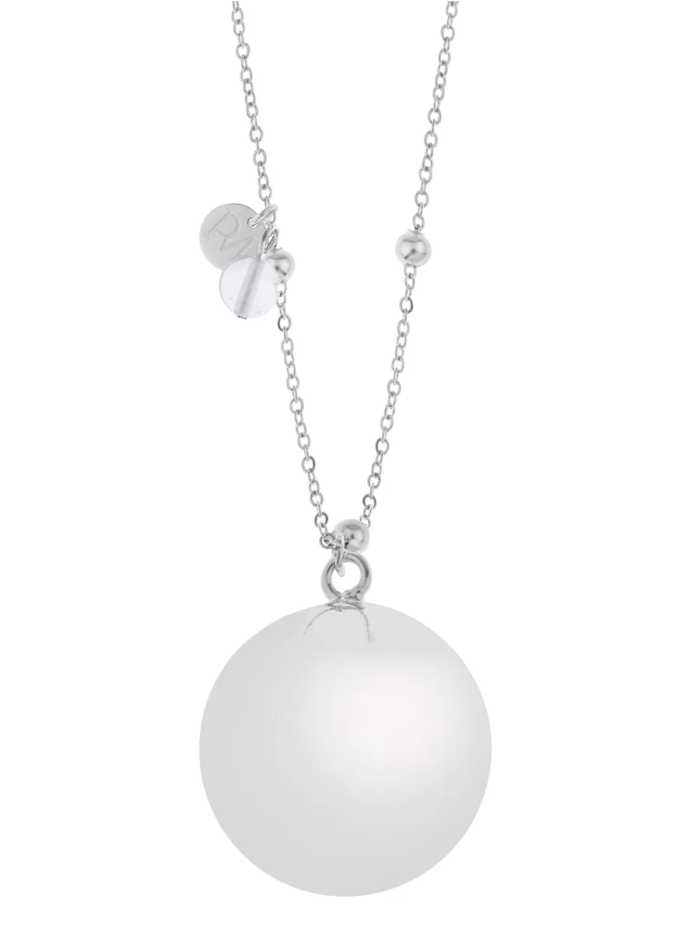 El llamador de ángeles o collar de embarazo Bola Olivia Silver Crystal es una joya delicada y simbólica diseñada para acompañarte durante esta etapa tan especial. Inspirado en una antigua tradición mexicana, su suave sonido crea un vínculo calmante entre la madre y el bebé. Fabricado en acero inoxidable con una bola de metal bijou, combina significado con un diseño pensado para llevar cómodamente durante todo el embarazo.