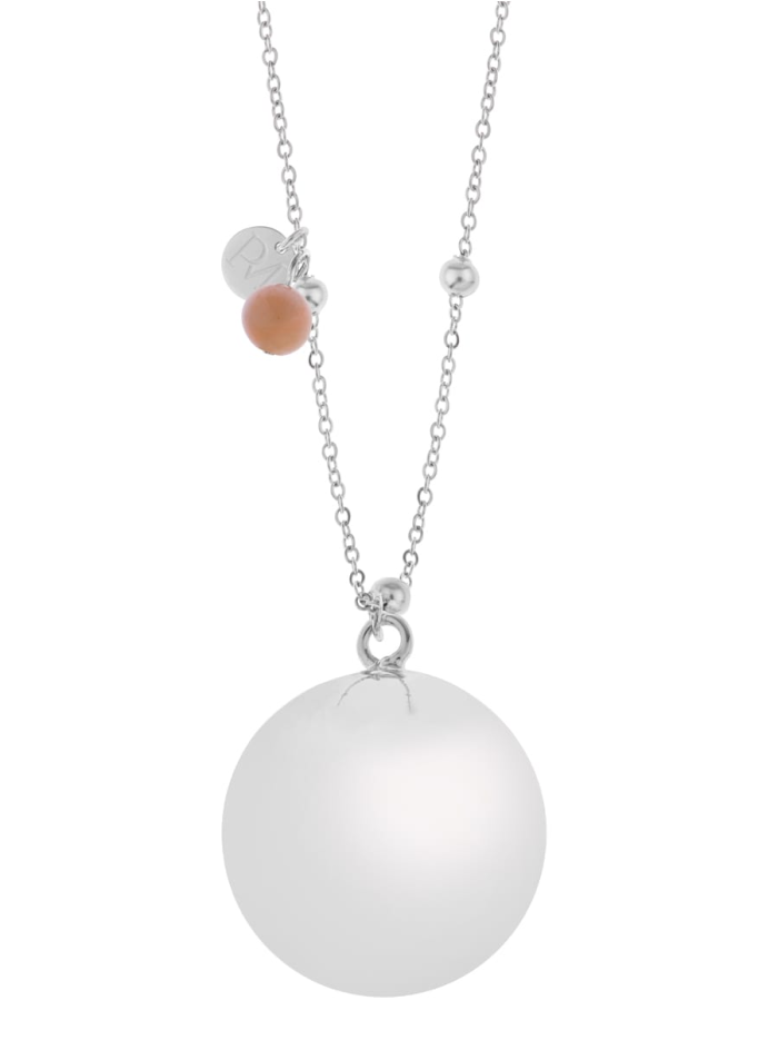 El llamador de ángeles collar de embarazo Bola Olivia con piedra lunar plateada combina elegancia, tradición y bienestar durante la gestación. Inspirado en la antigua tradición mexicana, su suave sonido crea un vínculo relajante entre madre y bebé, mientras la piedra lunar potencia la energía femenina, la intuición y la calma interior. Perfecto para llevar durante todo el embarazo y como recuerdo especial del vínculo prenatal.