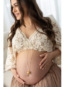 El llamador de ángeles o collar de embarazo Sofie Grey Redonda combina elegancia y tradición. Según la antigua tradición mexicana, este collar de bola aporta buena suerte, salud y prosperidad a la madre y al bebé. Su delicado sonido crea un ambiente relajante durante el embarazo y fortalece el vínculo entre madre e hijo. Tras el quinto mes de gestación, el bebé puede percibir y reconocer suavemente el sonido de la bola. Diseñado para llevar cómodamente sobre el vientre, es un accesorio seguro y bonito durante toda la gestación.