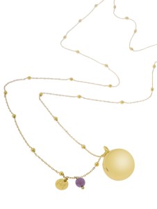 El llamador de ángeles o collar de embarazo Olivia Dorado con amatista es una joya elegante, pensada para acompañarte durante una de las etapas más especiales. Inspirado en la tradición mexicana del collar bola, su suave sonido crea un vínculo calmante entre la madre y el bebé. La amatista, conocida por sus propiedades protectoras y armonizadoras, aporta una sensación de paz interior y equilibrio, mientras su acabado dorado lo convierte en un accesorio atemporal y delicado.