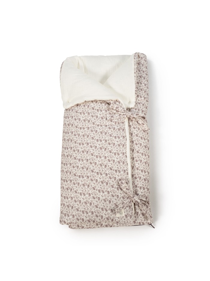 El Saco arrullo Gala de Walking Mum con estampado floral es ideal para mantener al bebé abrigado y cómodo desde sus primeros días. Fabricado en suave muselina 100% algodón, puede usarse como arrullo para el capazo o como manta para la cuna. Su diseño con lazos y cremallera inferior ofrece practicidad, estilo y confort en todo momento.