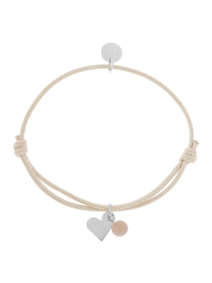 La pulsera Mea es el accesorio perfecto para aportar un toque delicado y elegante a tu día a día. Su diseño minimalista, combinado con un corazón en tono plata y una suave piedra lunar, la convierte en una joya versátil y llena de significado. Gracias a su cordón ajustable, se adapta cómodamente a cualquier muñeca y es ideal tanto para llevar sola como combinada con otras pulseras.