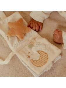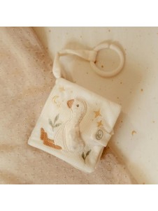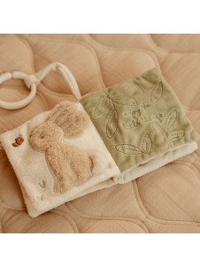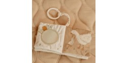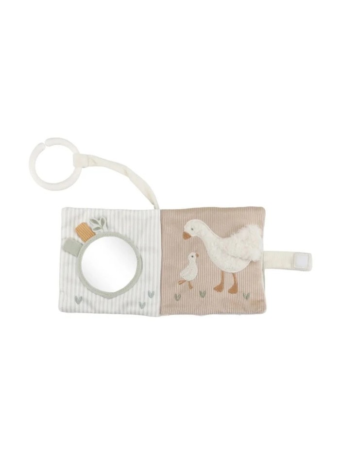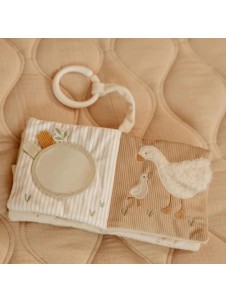 El libro de actividades Little Goose Newborn Naturals es muy suave y está diseñado para estimular los sentidos del bebé desde el nacimiento. Con diferentes texturas y tejidos, y un espejo interior, fomenta la curiosidad, la exploración sensorial y la coordinación ojo-mano, siendo ideal tanto en casa como fuera, gracias a su aro para colgar.