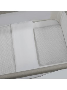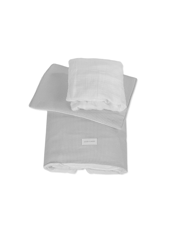 Set minicuna Little Bloom gris de Pasito a Pasito, conjunto completo de 90×50cm o 120x60cm en algodón suave y transpirable que crea un entorno cómodo, seguro y elegante para tu bebé.