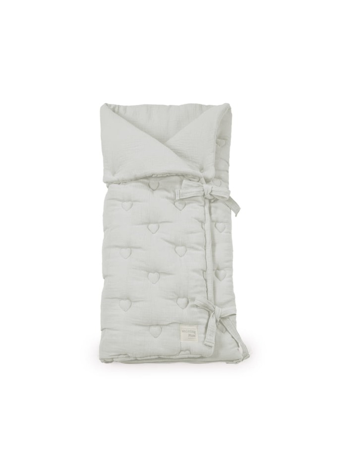 El Saco arrullo Sintra Verde de Walking Mum es un encantador saco manta con corazones bordados está confeccionado en suave muselina 100% algodón, ideal para los primeros días del bebé. Perfecto para el capazo o como manta para la cuna, combina calidez, estilo y practicidad.
