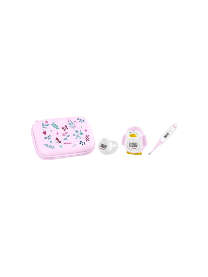 Thermokit Squirrel de Miniland es un kit de termómetros digitales pensado para controlar la temperatura de tu bebé en cualquier situación diaria. Incluye tres dispositivos específicos para cuerpo, baño y ambiente, ofreciendo mediciones rápidas, cómodas y fiables que aportan tranquilidad a las familias desde los primeros meses.