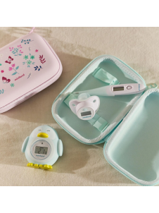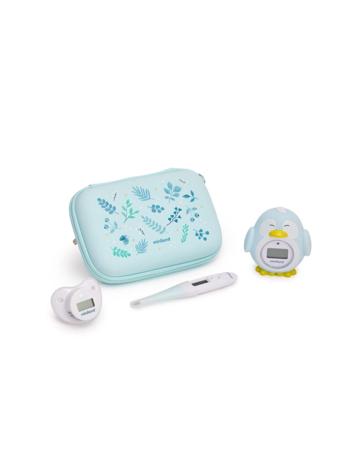 Thermokit Bear de Miniland es un kit de termómetros digitales pensado para controlar la temperatura de tu bebé en cualquier situación diaria. Incluye tres dispositivos específicos para cuerpo, baño y ambiente, ofreciendo mediciones rápidas, cómodas y fiables que aportan tranquilidad a las familias desde los primeros meses.