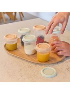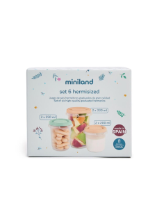 El Set de 6 Botes Herméticos de Miniland es una solución práctica para conservar, organizar y transportar la alimentación del bebé con total seguridad. Incluye recipientes herméticos de distintos tamaños con marcas de medida que permiten controlar cada ración con precisión. Son aptos para congelar, calentar y almacenar alimentos o leche materna, manteniendo sus propiedades y facilitando la rutina diaria dentro y fuera de casa.